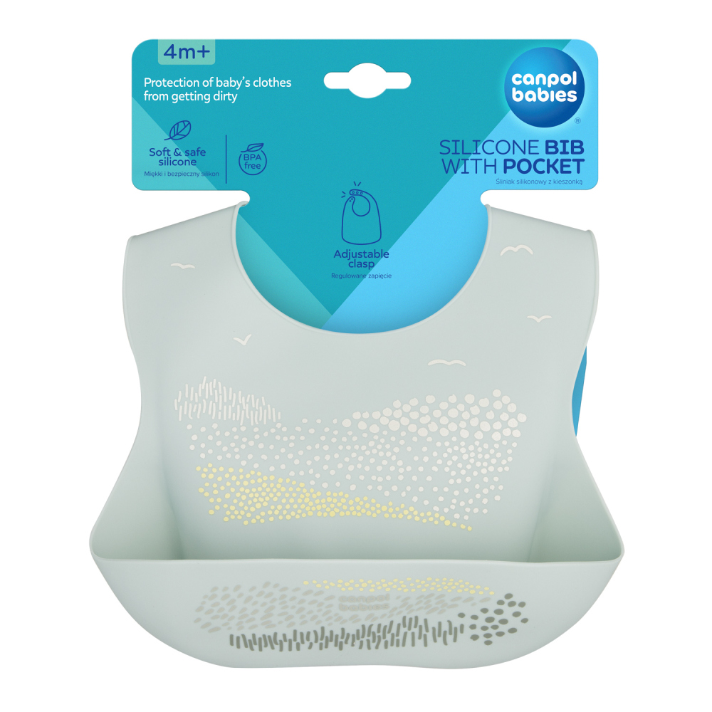 Vodotěsný silikonový bryndáček s kapsou je nezbytný při rozšiřování jídelníčku vašeho miminka a při prvních samostatných jídlech. Dokonale ochrání oblečení vašeho dítěte před ušpiněním a mokrem při jídle. Je lehký, měkký, pružný a příjemný na dotek. Bryndáček je vyroben ze 100% vysoce kvalitního potravinářského silikonu, díky čemuž je bezpečný a bez zápachu. Praktická hluboká kapsa uchová zbytky jídla, které neskončily v ústech dítěte. Kapsa je navržena tak, aby po naplnění jídlem zachovala svůj tvar a dítě ji při pohybu nebo přitlačení náhodou nevysypalo. Bryndáček se snadno čistí – můžete jej opláchnout pod tekoucí vodou, otřít nebo mýt v myčce na nádobí.