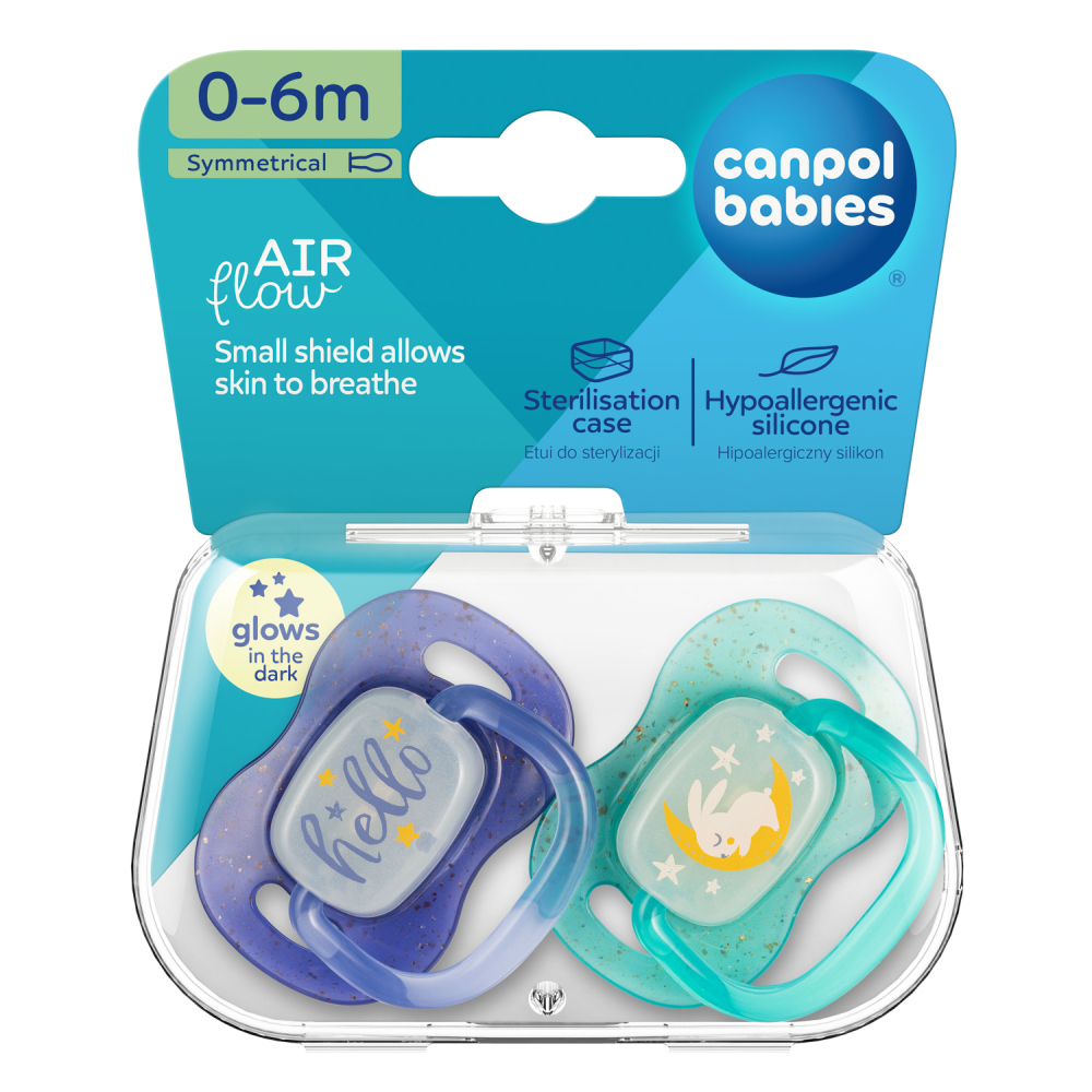 Canpol babies Dudlík svítící silikonový symetrický NIGHTGLOW 0-6m 2ks kluk