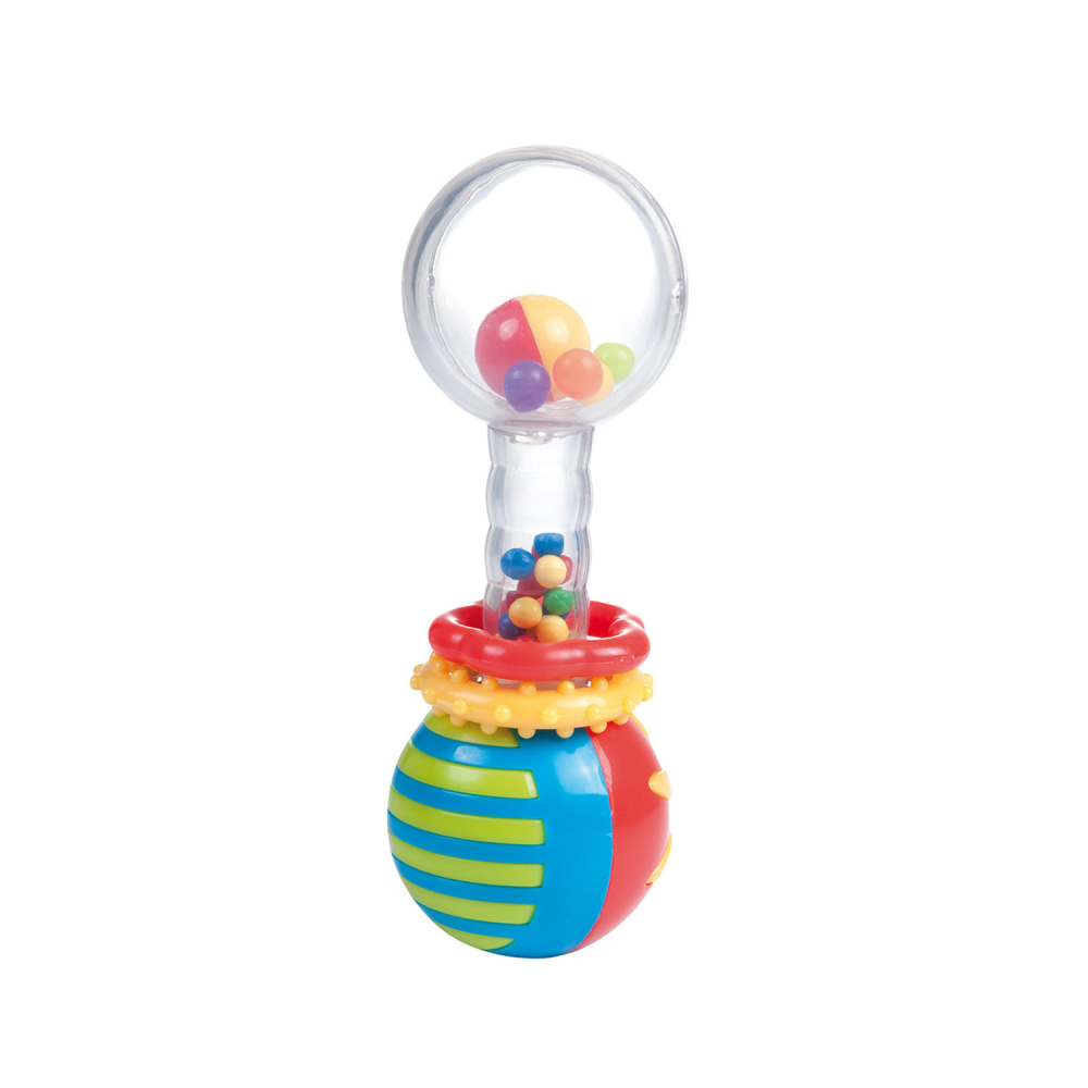 A csörgő könnyű és praktikus. Színes, különböző textúrájú, mozgatható elemei mozgásra és szórakozásra ösztönzik a babát, serkentve pszichomotoros fejlődését. Finoman lekerekített formákkal rendelkezik. A játék átlátszó részei apró, színes golyókat tartalmaznak, amelyek rázásra megmozdulnak és kellemes, csörgő hangot keltenek. 0 hónapos és annál idősebb gyermekek számára készült.
