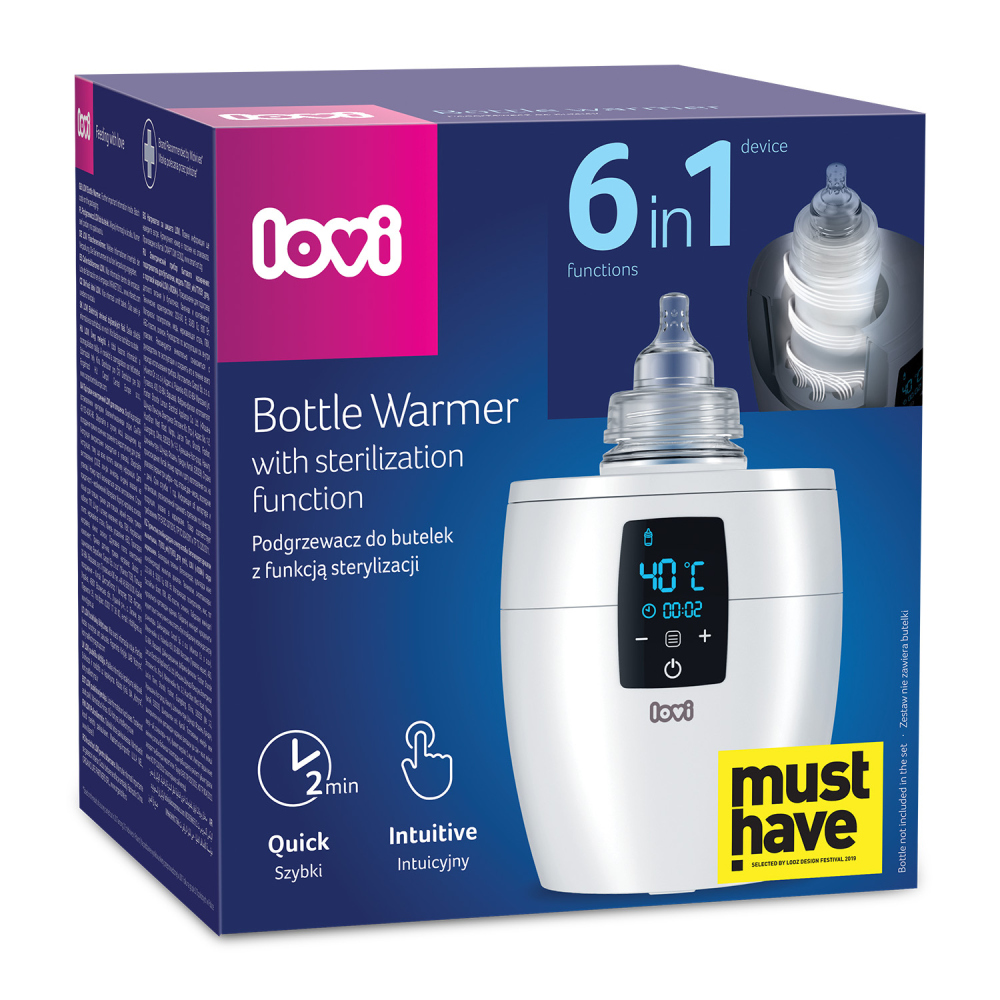 LOVI 6az1-ben cumisüveg-melegítő – melegít, hőmérsékletet tart, kiolvaszt és gőzzel sterilizál. Gyors és egyenletes melegítés, intuitív vezérlés az áttekinthető kijelzőn. 6 funkció három üzemmódban: BOTTLE, HOT, DINNER. Univerzális – a piacon kapható cumisüvegek többségével kompatibilis. Biztonságos – automatikus kikapcsolás funkcióval.