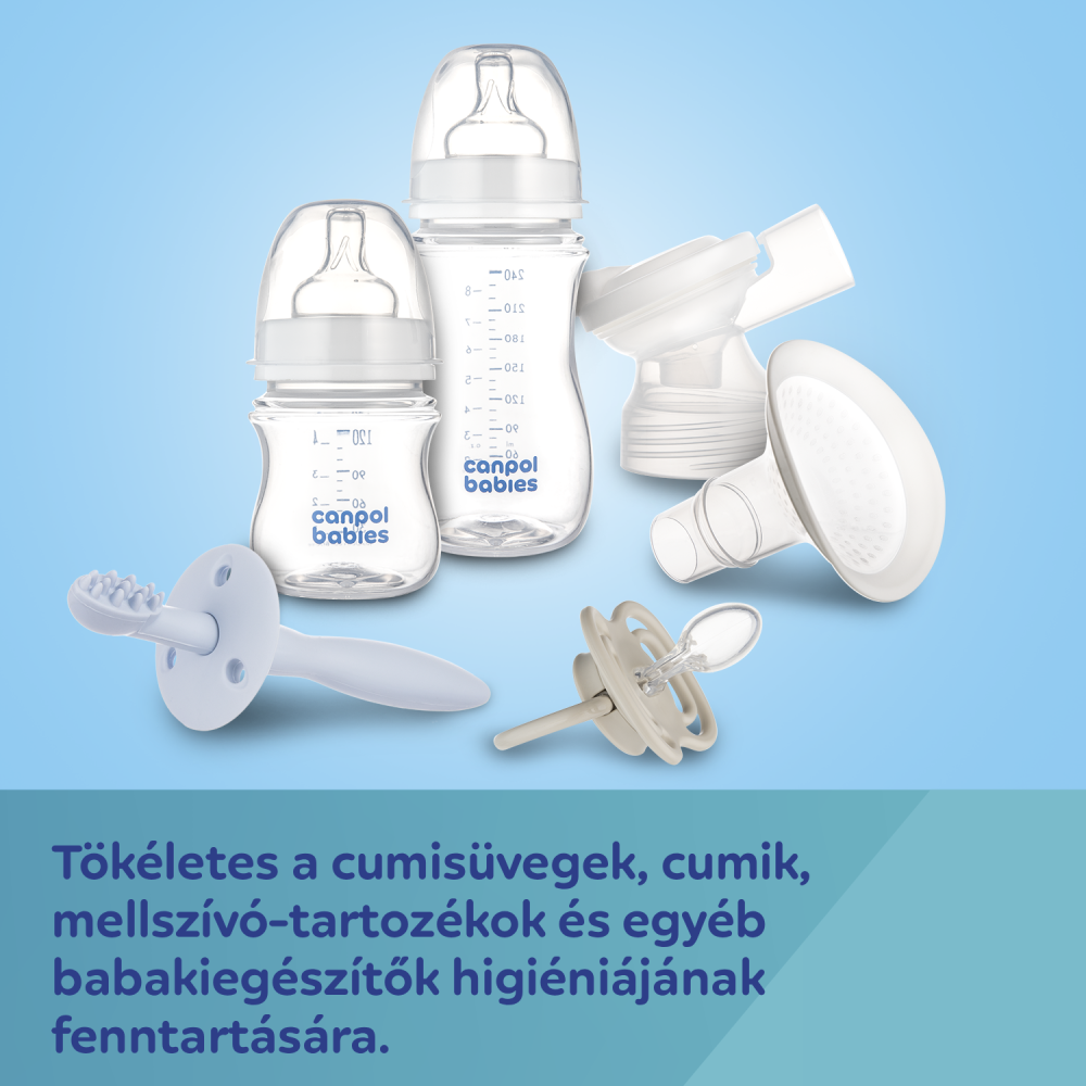 Gyors sterilizálás megoldás cumisüvegekhez, cumikhoz, mellszívó alkatrészekhez vagy egyéb kiegészítőkhöz.
