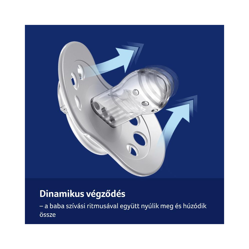 A LOVI® dinamikus cumikat neurológusokkal együttműködve fejlesztették ki. Egyedi kialakítását - nem homogén szilikonrétegeit és szimmetrikus formáját az anyai mellbimbó ihletette. Az újszerű formatervezést a sötétben világító fogantyú egészíti ki.
