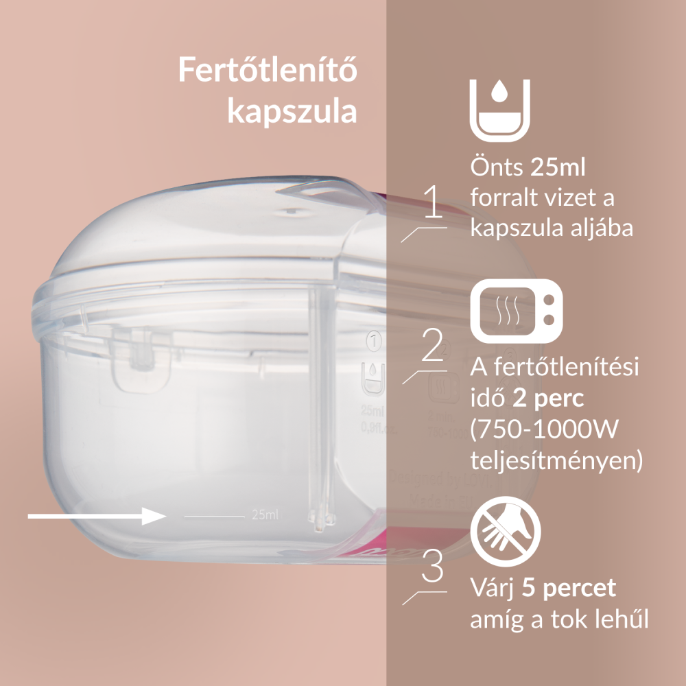 sterilizáló kapszula a cumi higiénikus tárolásához és fertőtlenítéséhez