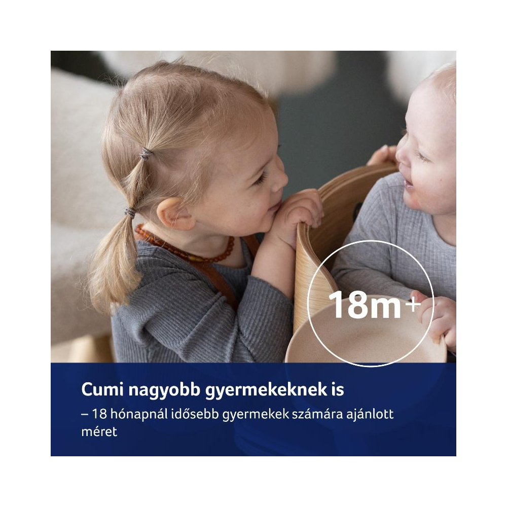 Ellenőrizze a cumi minőségét minden egyes etetés előtt, mielőtt megetetné gyermekét. Fordítson fokozott figyelmet a cumira, miután a baba első fogai benőttek. Tesztelje a gumiszalag minőségét úgy, hogy alaposan meghúzza minden irányban. A sérülés első jelére azonnal dobja ki a cumit, és ne használja újra. Csak olyan cumitartót használjon, amely megfelel az EN12586 szabvány követelményeinek. Soha ne rögzítse a cumit a ruházat különböző zsinórokhoz, fűzőkhöz vagy szalagokhoz. A gyermek megfulladhat. Ne hagyja a cumit az ajánlottnál hosszabb ideig közvetlen napfényben, hőforrás közelében vagy fertőtlenítőszerekben - a cumi rugalmassága meggyengülhet. A levett fedelet tartsa a baba elérhetőségein kívül - az esetleges fulladás megelőzése érdekében.