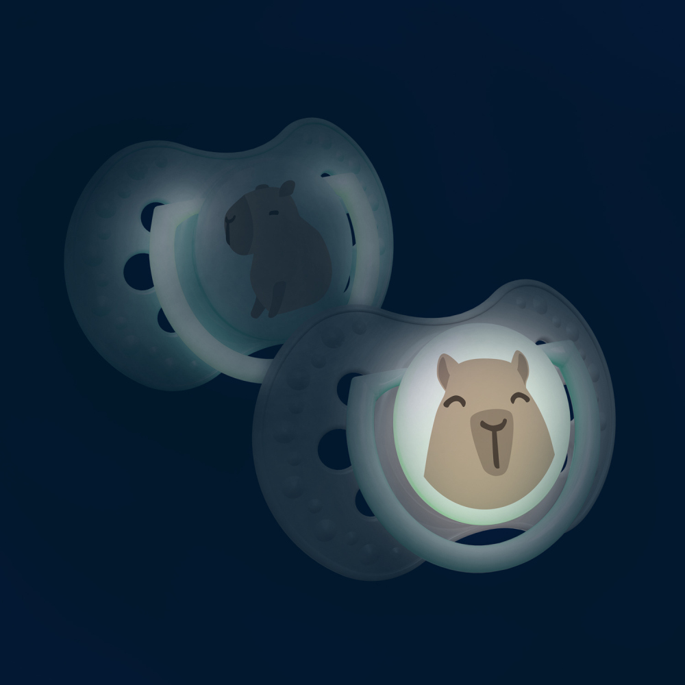 A csomagban lévő egyik cumi fogantyúja és a másik cumi középrésze világít a sötétben, így könnyebbé teszi az éjszakai megtalálást.