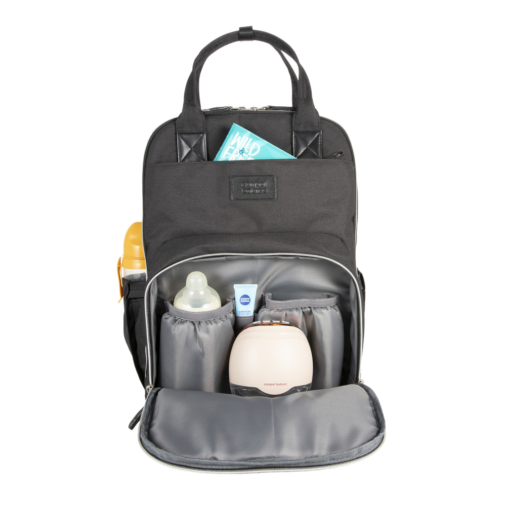 Canpol babies Multifunkciós pelenkázó hátizsák fekete – stílusos, praktikus és tágas társ a mindennapi babás sétákhoz.
