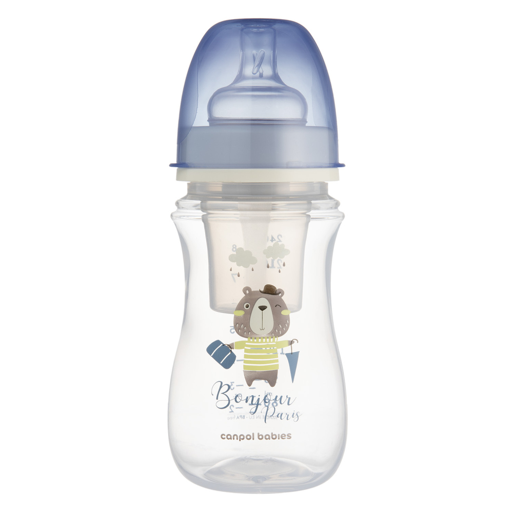 Canpol babies Lahev širokohrdlá antikoliková BONJOUR PARIS 240ml modrá
