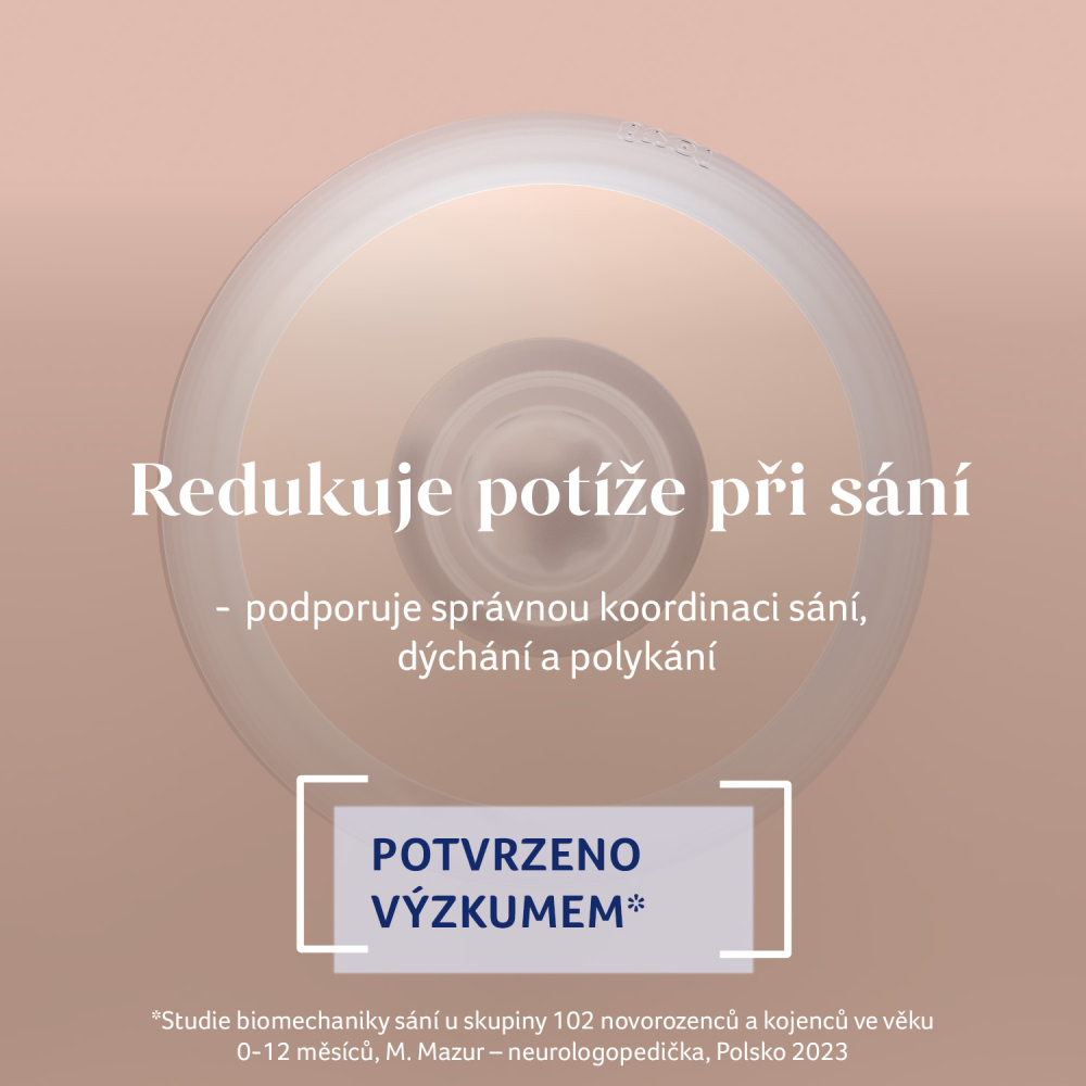 Díky měkké dynamické savičce a pevnější základně nenarušuje sací reflex.