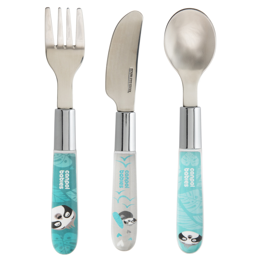 Speciálně tvarovaný dětský kovový příbor (nůž, vidlička, lžička) je určen dětem, které se učí samy jíst. Zaoblené tvary nedráždí cilivé dětské dásně a jsou pro dítě bezpečné. Příbor je vyroben z kvalitní nerezavějící oceli. Doporučujeme pro děti starší 18-ti měsíců.