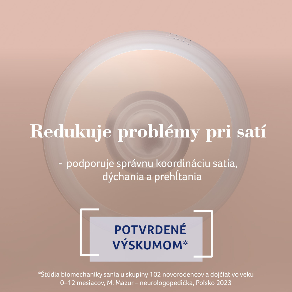 • Prirodzenosť a elasticita, jemný prstenec na cumlíku vo farbe dvorca bradavky.