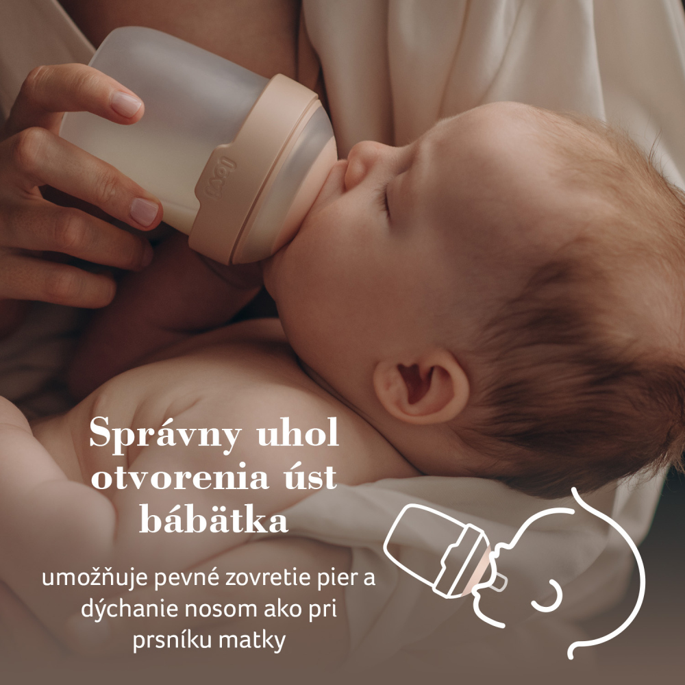 - Tvar a proporcie podľa vzoru mamičkiných pŕs zaisťujú, aby ústa dieťaťa boli umiestnené v správnom uhle