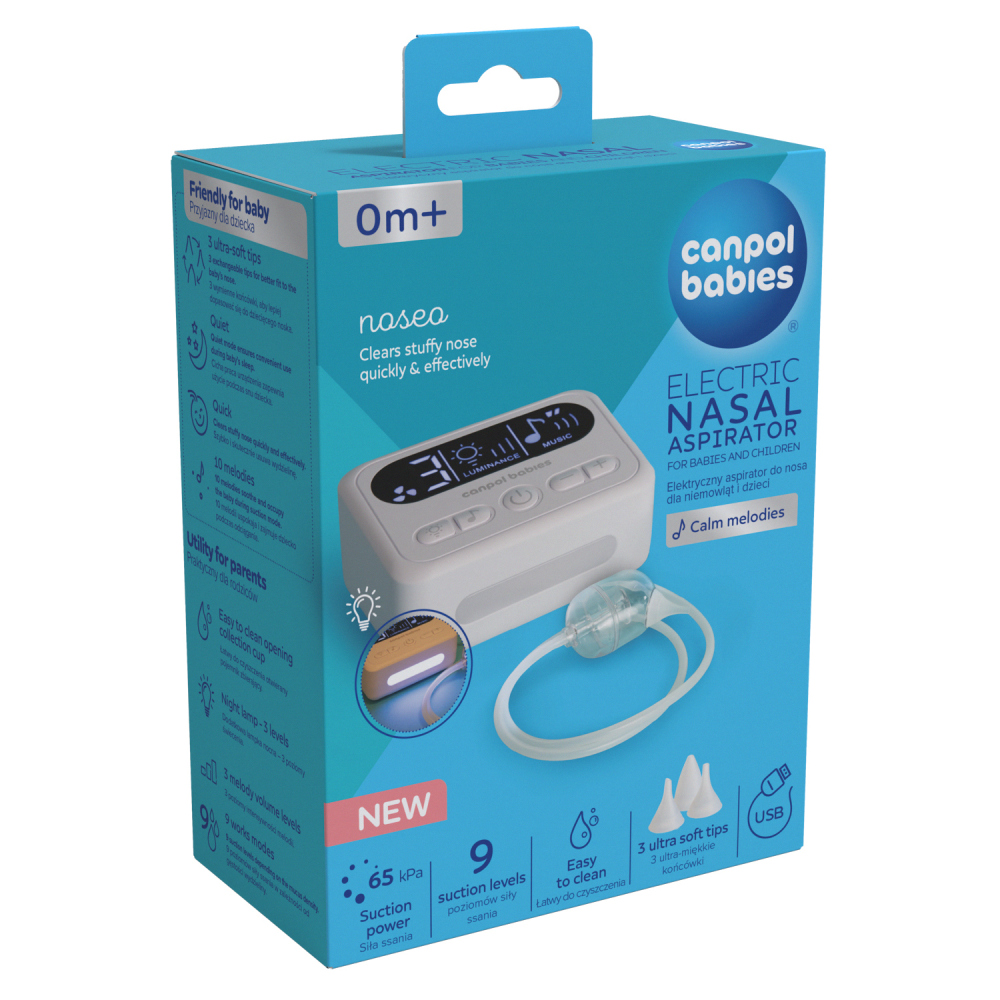 Canpol babies elektrická nosová odsávačka Noseo rýchlo a účinne uvoľňuje upchatý nos vášho bábätka a zaisťuje komfort aj bezpečné používanie už od prvých dní života.