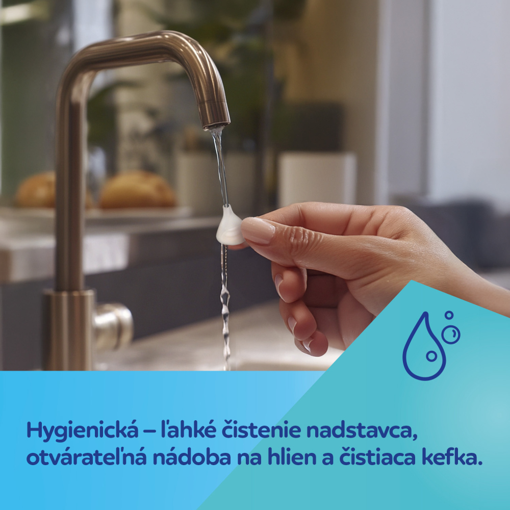 Jednoduché čistenie zaisťuje odnímateľná zberná nádobka na hlien a čistiacu kefku. Súčasťou balenia je aj pinzeta pre bezpečné odstránenie zaschnutého hlienu.